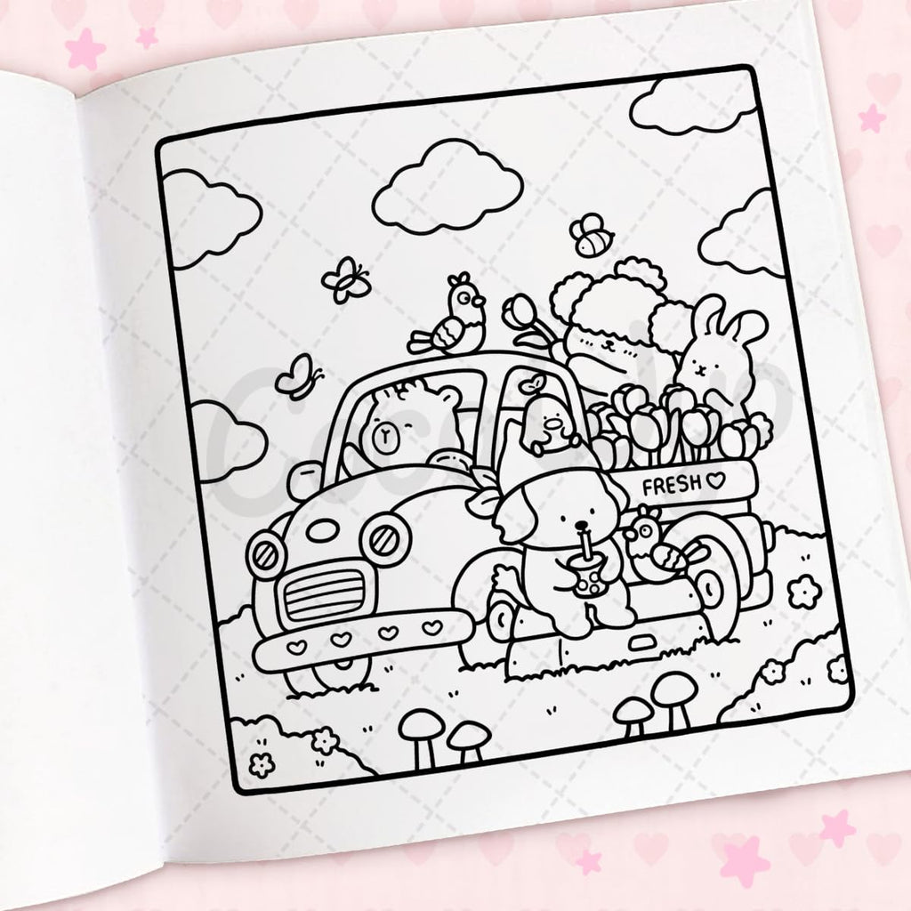 This beautiful book is brimming with charming drawings for you to colour in – budding gardens, baby animals, and sunny skies! These cozy cuties are the perfect companion for a relaxing day of colouring with simple, cute pages you can complete in one sitting!