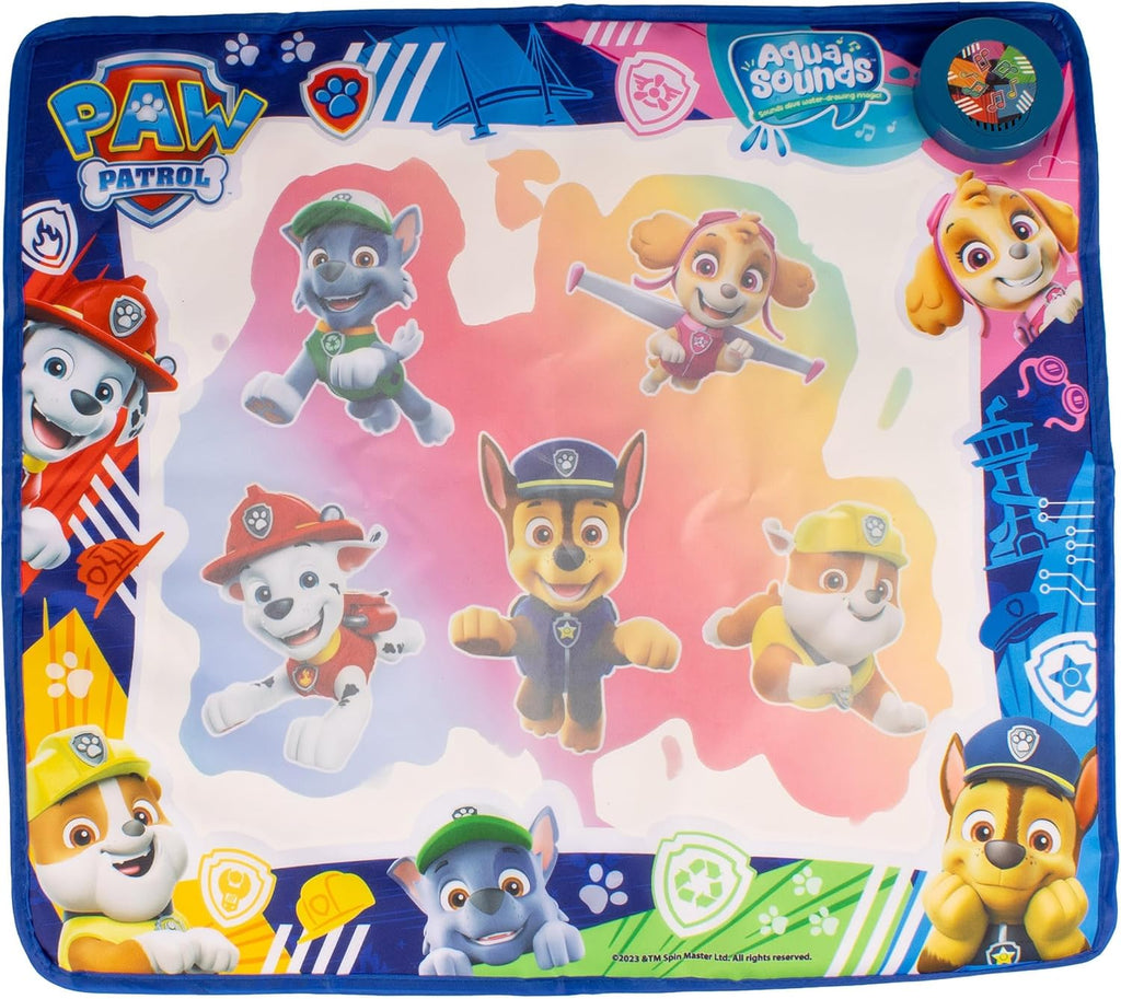 Have lots of fun doodling with your Paw Patrol mat. With each character making a different sound. Simply wet your water pen and doodle. Use the water doodle pen to reveal characters. The sensors in the mat activate character noises every time you doodle over them!