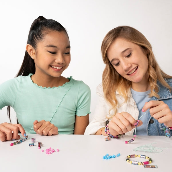 Collect unique kawaii-themed stickers, each with a cool holographic foil treatment. There are rare and super-rare stickers to discover and collect! The Sticki Station includes 32 Sticki Rolls (320 stickers!) as well as beads, clasps, charm tags and necklace pendants! Makes 6 bracelets and 2 necklaces.