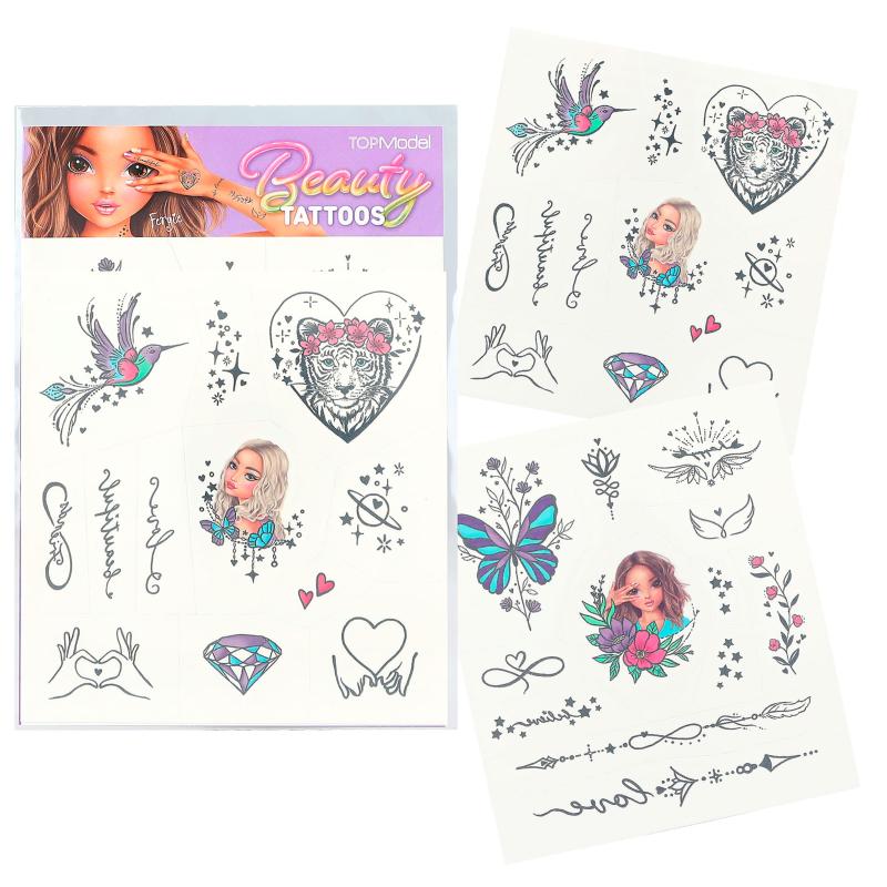 The adhesive tattoos from the Beauty series by TOPModel are beautifully filigree and very easy to apply to the skin. 2 sheets of tattoos per foil bag.