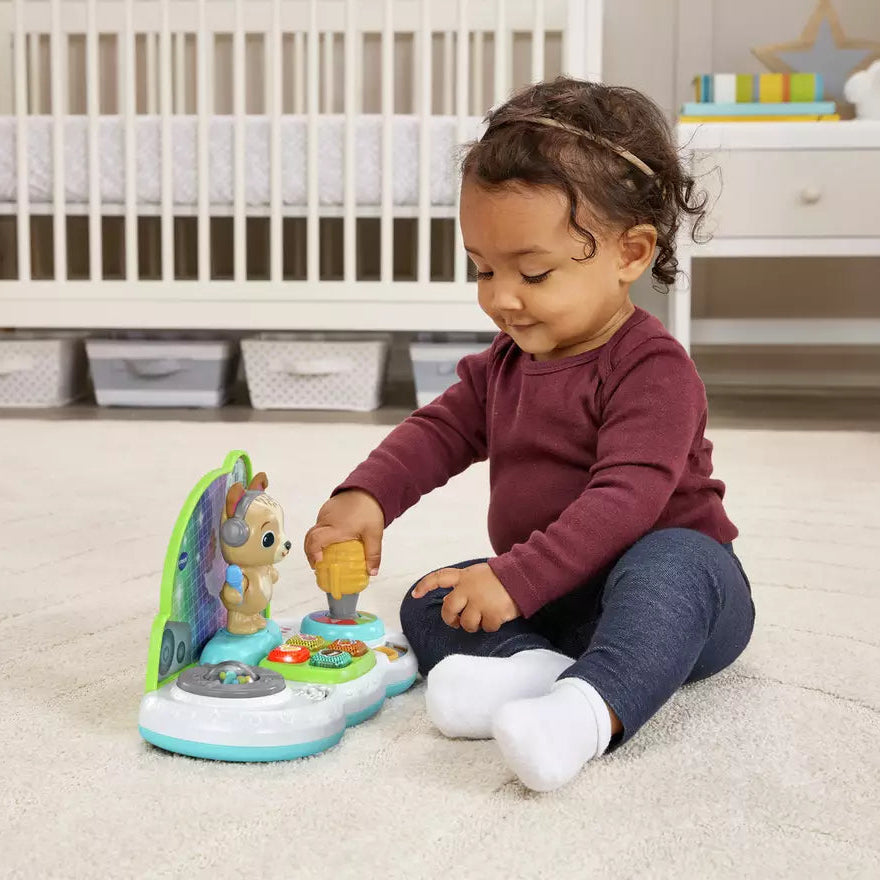 Get this musical party started with the delightful DJ Jams Puppy! Press the Saxophone, Guitar, Piano or Xylophone buttons. With music, learn and play modes, discover over 60 songs, melodies, sounds & phrases. Little ones can follow flashing lights to bop to the beat. Move around the microphone to make puppy dance! Twist the turn table with bouncing beads for DJ scratch sounds and cute phrases. A groovy introduction into the world of music for little performers!
