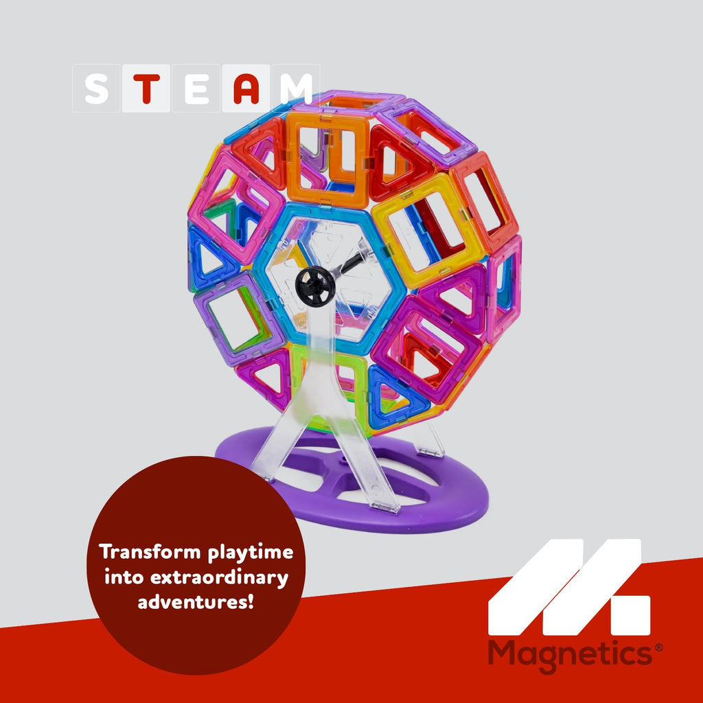 - BUILD & SPIN: This 46-piece magnetic tile set lets kids build their own Ferris wheel that actually spins! Encouraging creativity, imagination, and hands-on learning through magnetic construction play.