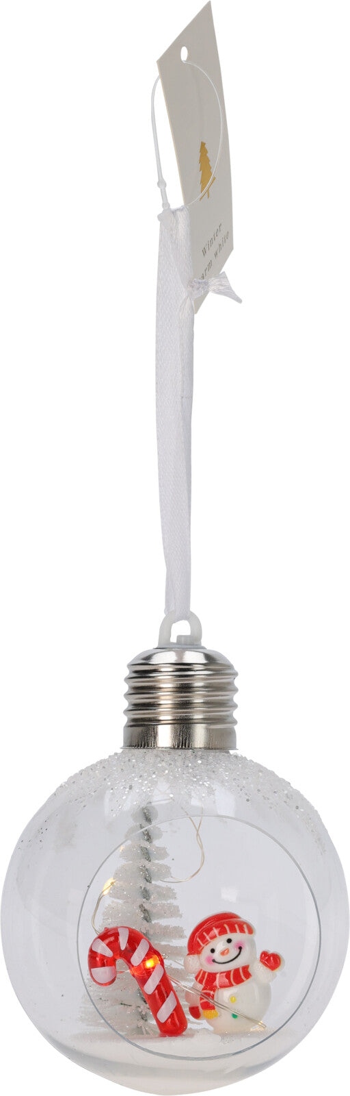 Give an illuminating touch to your Christmas setting with this LED Bauble. The bauble features assorted characters & LEDs for a warm light-up effect. Complete with a hook for hanging, it's perfect for adding holiday cheer to your decor.