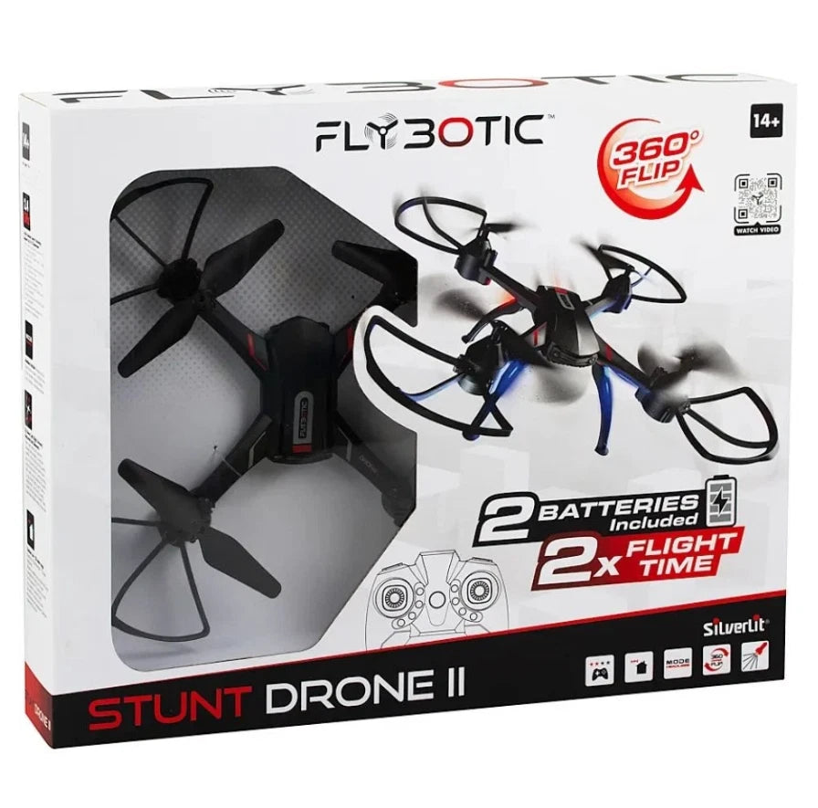 Get ready to soar with the Flybotic Stunt Drone II, the perfect beginner-friendly drone for thrilling aerial fun! This compact 4-channel drone features a built-in gyro and six-axis stabilization for smooth, steady flights. Show off cool tricks like 360-degree flips and other acrobatic stunts that will wow your friends. Easy to control in all directions and equipped with 2.4 GHz technology, it lets multiple drones fly together without interference. Comes with a built-in rechargeable battery plus an extra one for nonstop sky excitement! Perfect for young drone enthusiasts ready to explore the skies.