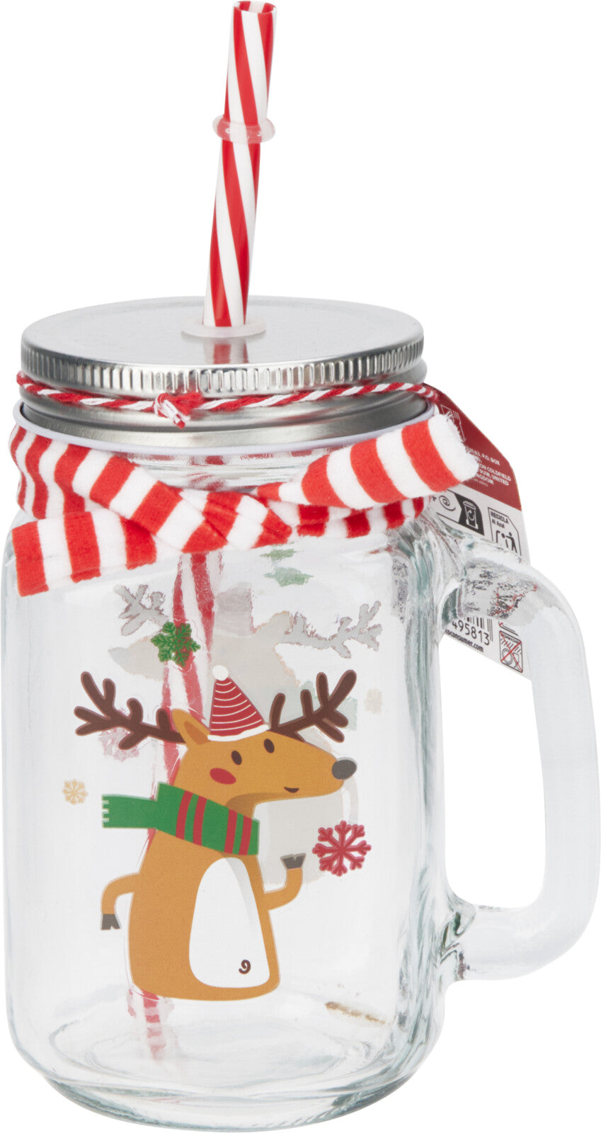 Bring Christmas cheer to every sip with this Christmas Drinking Jar With Straw. Featuring a festive print, this jar is perfect for hot chocolate, eggnog or your favourite winter beverage.