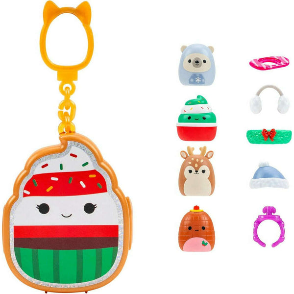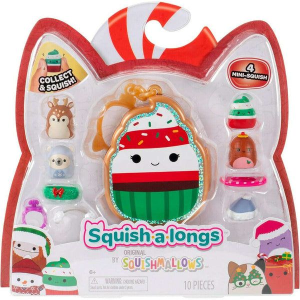 Squish on the go with Squish-a-longs Clip-a-longs! This stylish Mini-Squish carrying case is holiday themed and includes 4 Mini-Squish to collect. Accessorise your Mini-Squish with the included Mini-Squish accessories or attach your Mini-Squish to the ring for on-the-go fun! Squish-a-longs are only by Original Squishmallows. Join the Squad today! Includes: (4) 1-inch Mini-Squish (4) Mini-Squish Accessories (1) Clip-a-longs Case (1) Ring Attachment