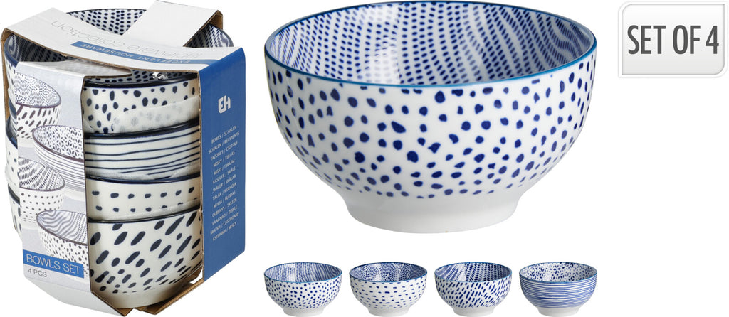 Made of high quality porcelian, these bowls are perfect for daily use. Make mealtimes or even snack times a little brighter with this four-piece patterned bowl set. Whether you fill them with snacks or small portions of soup, these bowls are ideal for daily use at meal and snack times.
