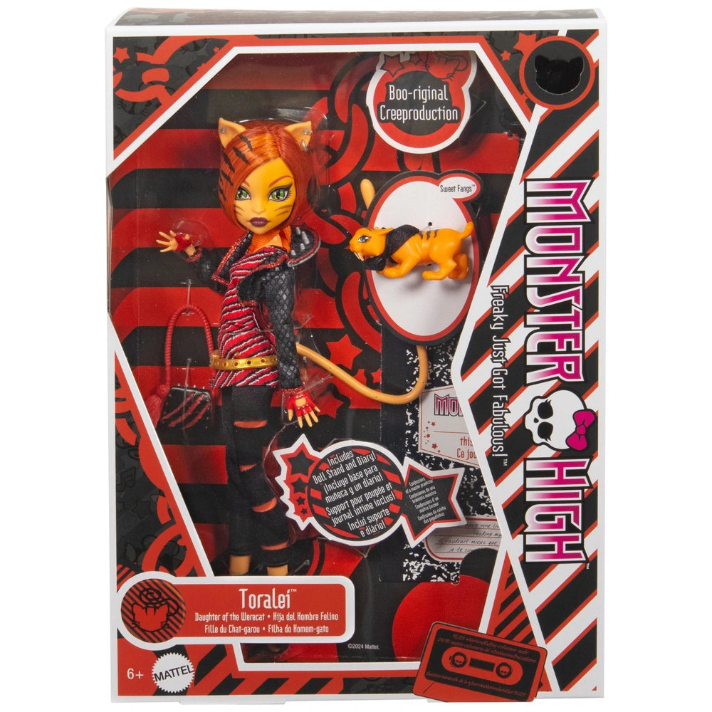 - Contents: x1 Monster High Toralei doll wearing fashion and accessories, x1 pet, x1 guitar, x1 hairbrush, x1 diary, x1 doll stand