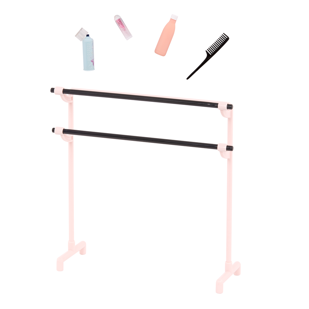Take the stage and shine in the spotlight with Our Generation doll Prima! This 18-inch ballerina doll has a huggable soft body and lifelike features to delight doll fans during playtime. Her beautiful hazel eyes open and close, and her curly, light-blonde hair is fun to style! Prima arrives wearing a cute pullover top, a ballet dress with a tulle skirt, a large headband, and ballet shoes. Plus, she comes with bonus accessories for kids to prep Prima before her recital. This set includes a comb, a bottle of hairspray, pretend lip gloss, a workout bag, a water bottle, and a ballet barre to create a mini dance studio! When it's time for dress-up, her outfit has easy-open closures to quickly put on and remove. So you can mix, match, and create more stylish looks on any adventure!