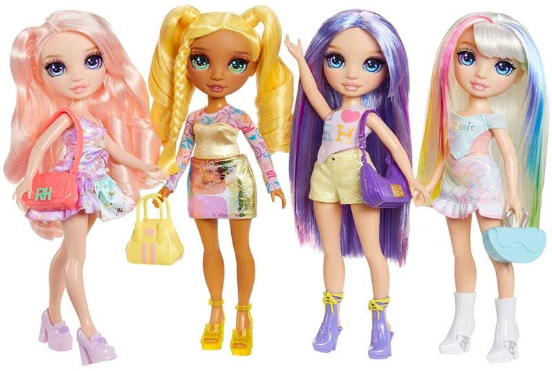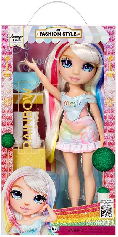 Rainbow High celebrates self-expression through style. The My Fashion Style collection features four iconic personalities—Bella, Sunny, Violet, and Amaya—each showcasing vibrant, statement-making outfits. Complete with trendy clothing, matching shoes, and fashionable handbags, every detail highlights their unique flair and colorful personalities. These dolls encourage creativity, perfect for imaginative play, storytelling, and fashion fun. Beyond style, they inspire children to confidently express themselves. Each set includes an 11” doll with long, brushable hair, glass eyes, a stylish outfit, shoes, and a handbag.