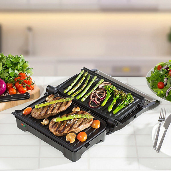 When laid flat, the grill provides an expansive cooking surface ideal for whole meals, while closing the lid allows you to create perfect sandwiches, paninis, and toasties. Featuring a non-stick surface, this appliance ensures easy food release and simplifies cleanup, making your cooking experience enjoyable and hassle-free.