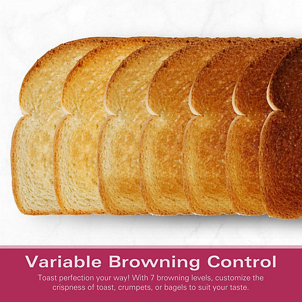 • 7 Adjustable Browning Levels: Achieve toast perfection every time. Choose from 7 browning levels to customise your toast, crumpets, or bagels to your preferred crispness and texture.
