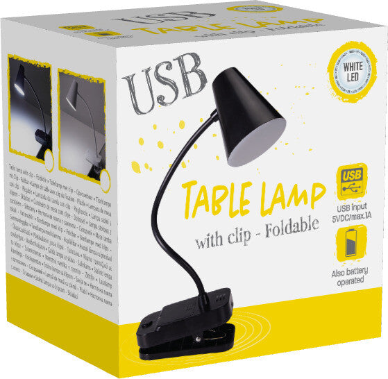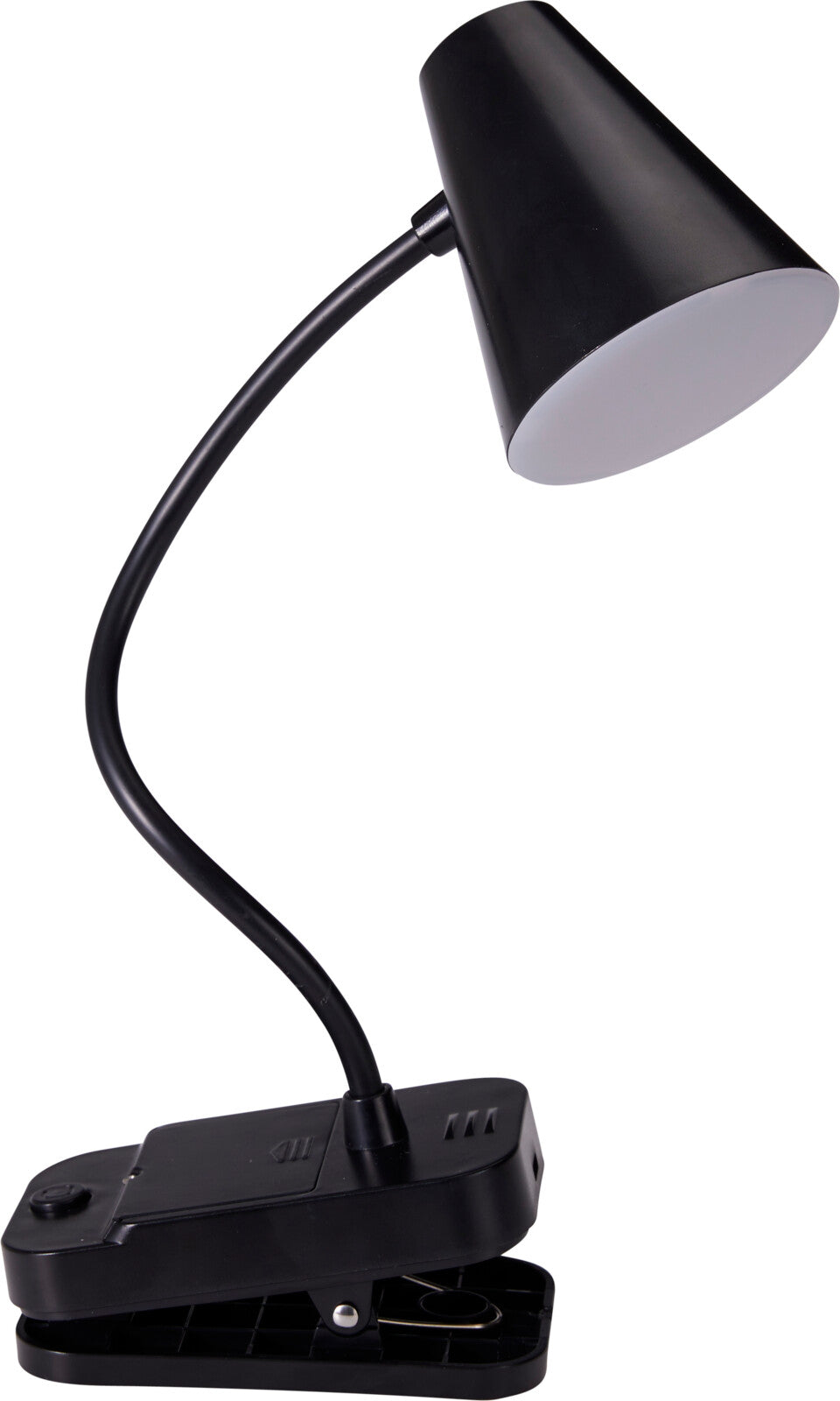 Modern adjustable LED lamp available in a white or black finish. This contemporary lamp features an integrated LED bulb that gives off a cool white light. The adjustable neck gives you full control of the light direction. This practical everyday use lamp can be simply clamped onto desks, tables, shelves, work surfaces, computers, bedside tables and much more for easy use.