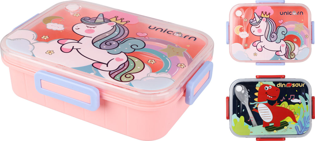 The lunchbox is divided into three compartments to keep food separate and is available in two fun designs: Unicorn and Dino.