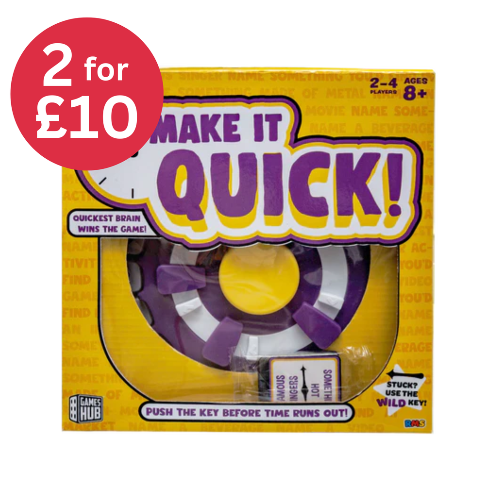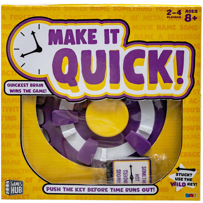 Make It Quick is the ultimate rapid-fire game where speed and smarts collide. Race against the clock to answer before time runs out. Perfect for parties, family nights, or anytime you want fast-paced fun and big laughs. Quick thinking wins the game!