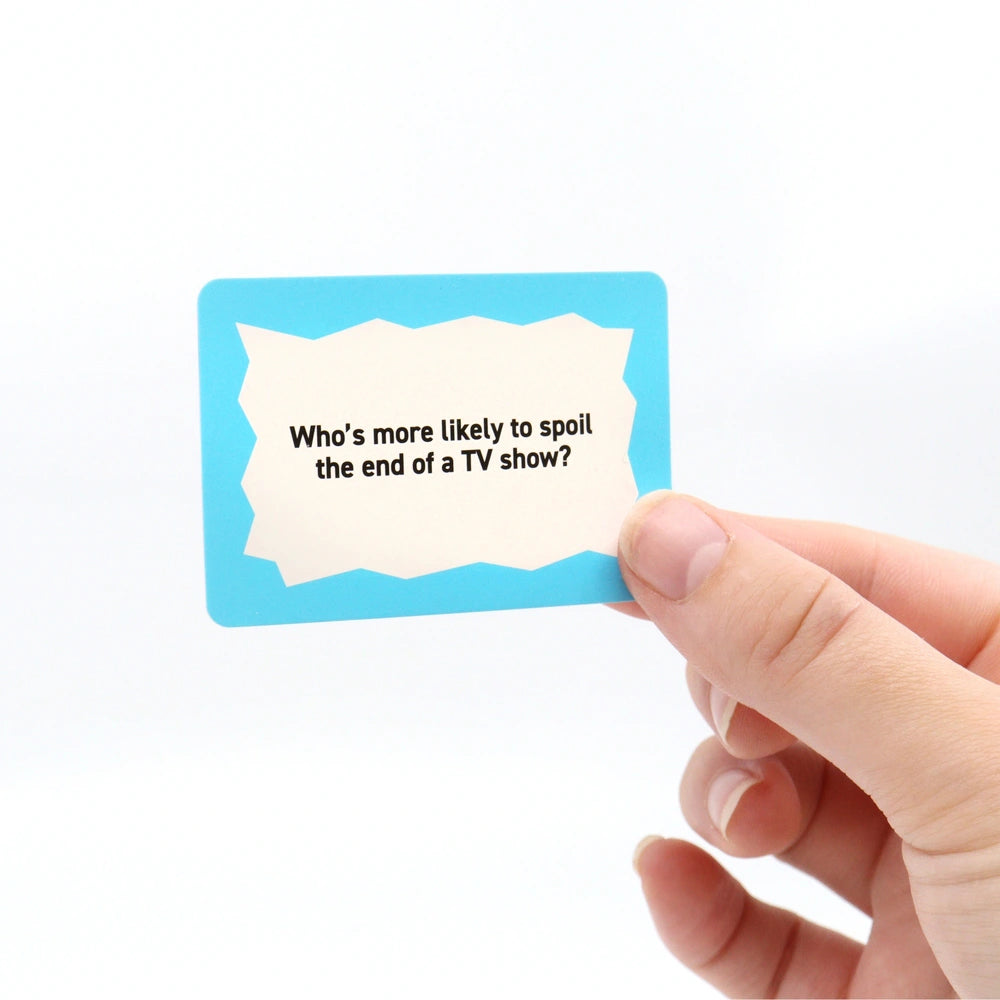 It may sound easy, but when you come up against questions like - who's more golden retriever? or who's more likely to join a cult for the free food? - it's hard to know who to throw under the bus, you or your partner? But as long as you both agree, your team is through to the next round. However, disagree and you're out! Last team standing is totally the winner.
