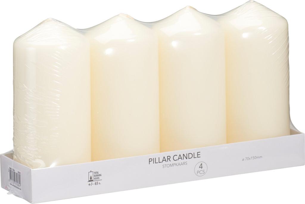 This 4 pack of unscented wax pillar candle, featuring a single wick, offers a premium and simplistic design. Its neutral Ivory colour effortlessly complements any décor, providing a clean and elegant look.