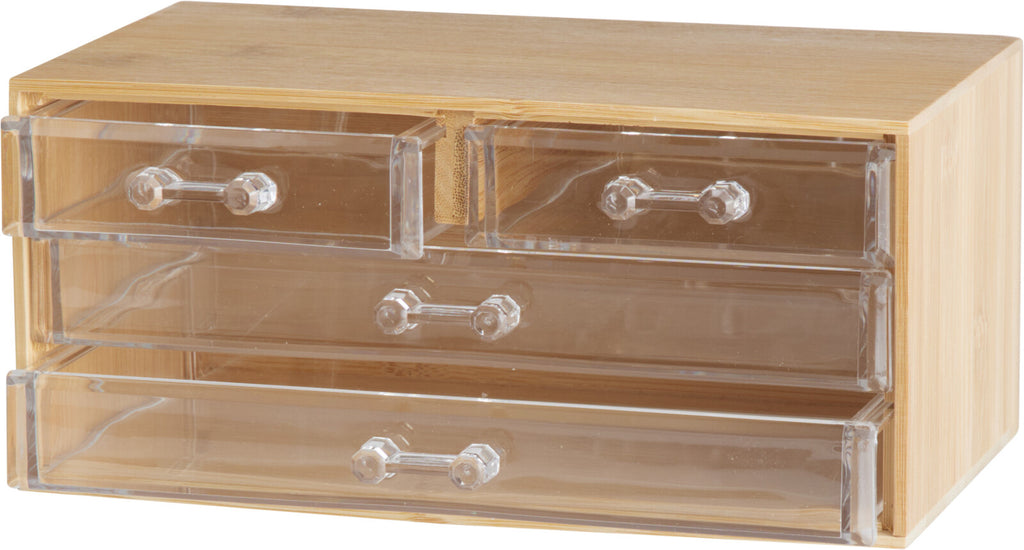 The warm bamboo finish adds an eco-conscious touch to your décor while the durable construction ensures long-lasting organisation and functionality.