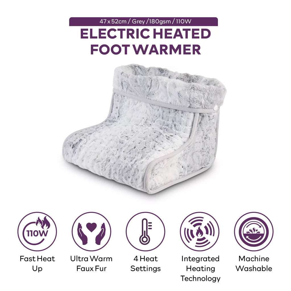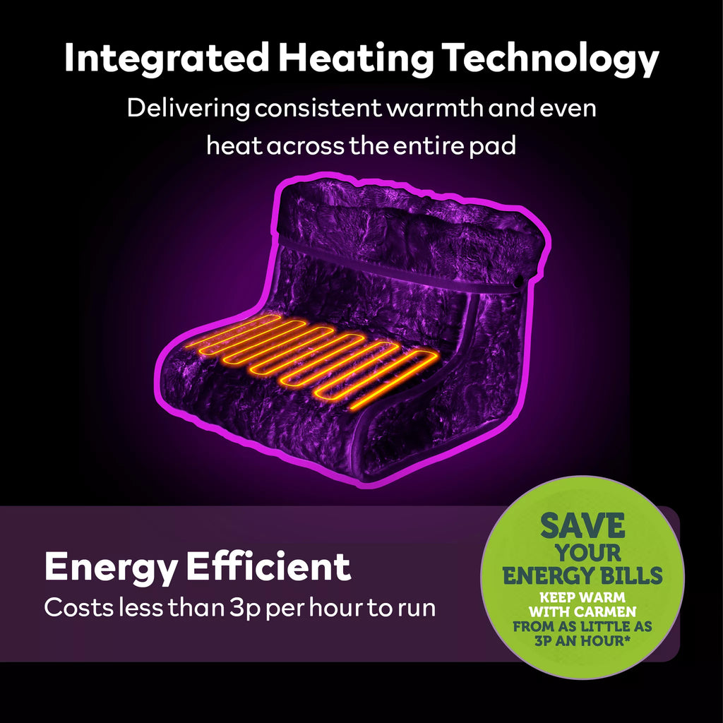 This Carmen Comfort Fleece Lined Electric Foot Warmer features a powerful 110W output, which provides fast heat up to help ease pain and aid circulation, so you can keep your feet warm and cosy in an instant. High quality 320gsm faux rabbit fur fleece is soft to the touch and is kind to sensitive skin so you can enjoy luxurious comfort. The material helps to lock in heat for warmth so you can you’re your feet when relaxing on the sofa or when working for convenience. Simple and easy to use remote control with four heat settings allows total control over the warmth of your foot warmer, providing the perfect temperature for all your needs. The detachable controller lets you control the temperature and then it can be removed when the foot warmer lining needs washing. Simply unplug the cord and pop the inner lining in the washing machine for easy care and cleaning. The heated Foot Warmer is efficiently designed to allow consistent warmth, costing just 3p per hour to run*. An automatic switch off feature avoids overheating for total peace of mind.