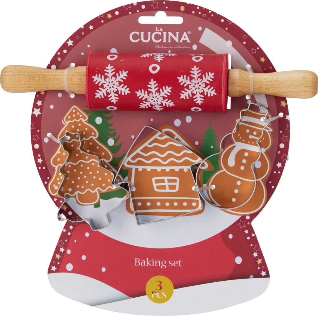 The Christmas Mini Baking Set is perfect for creating festive treats! This set includes three stainless steel gingerbread cutters. To ensure effortless rolling the set also includes a non-stick silicone rolling pin. Perfect for festive family baking and gifting!