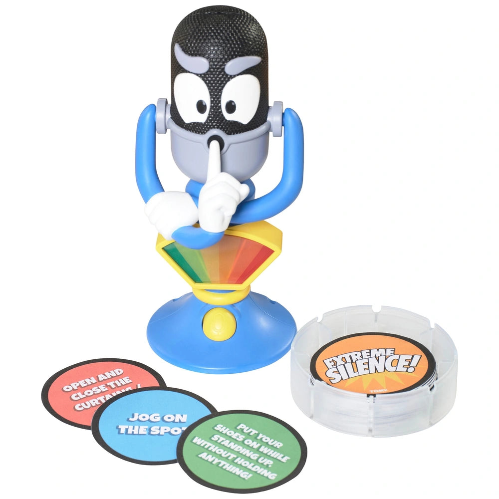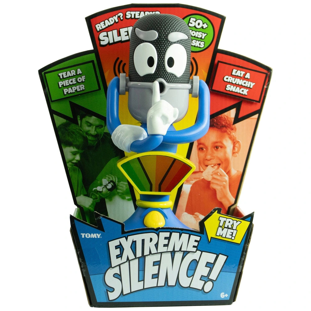 Get ready for hilarious fun with the TOMY Extreme Silence Game! Players face laugh-out-loud physical challenges but you must complete them in total silence. From tearing paper to whispering a tune, every sound is tracked by the real working Decibel Detector. If the meter hits red, the alarm goes off and your turn is over.