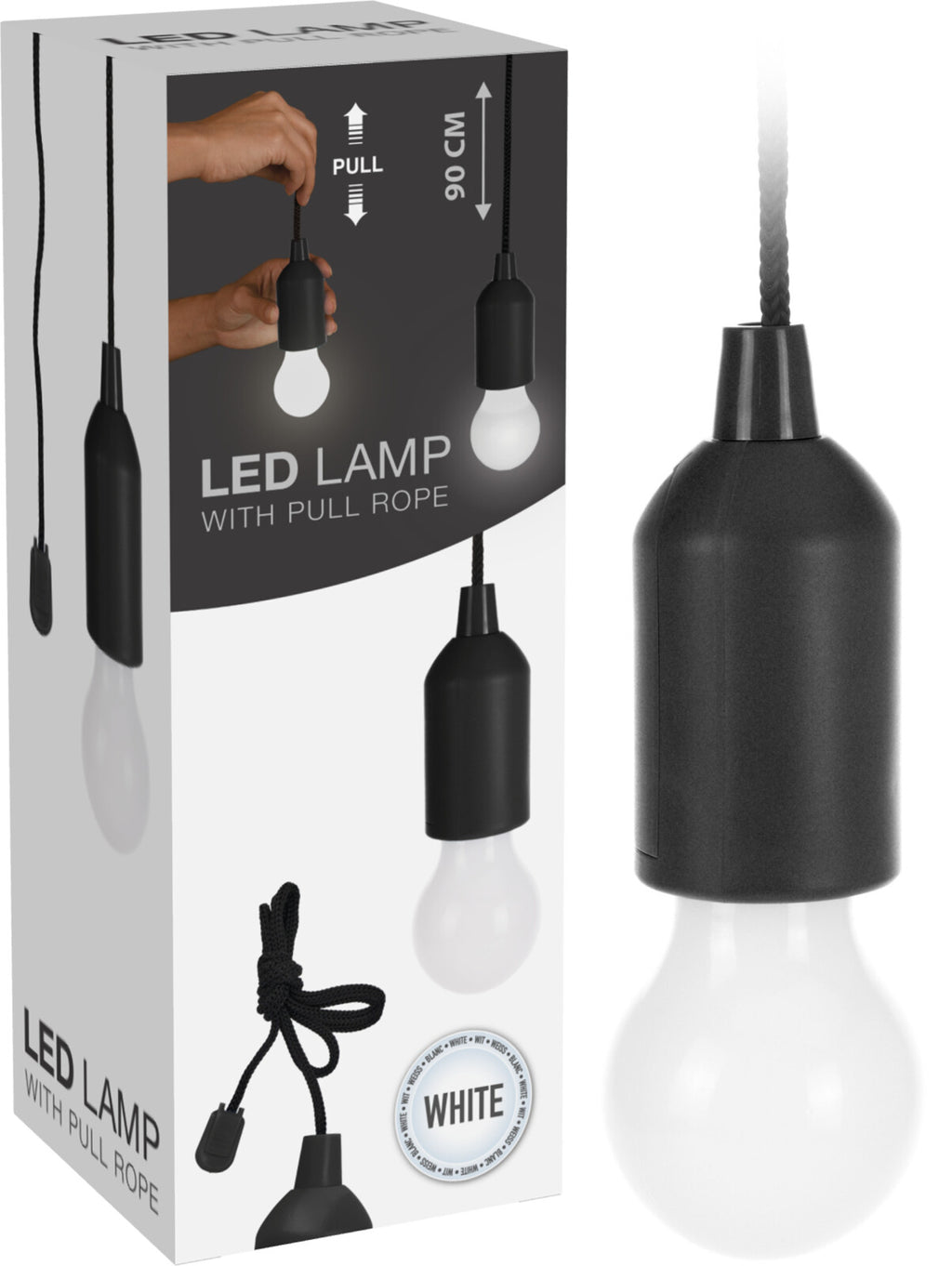 It features a convenient pull rope switch for easy on/off control and comes with a 90cm cord. Made from durable ABS material and powered by 3 AAA batteries (not included).