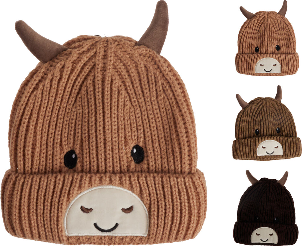 These knitted hats have a super cute cow face & ear detailing, perfect for cold winter days & nights.