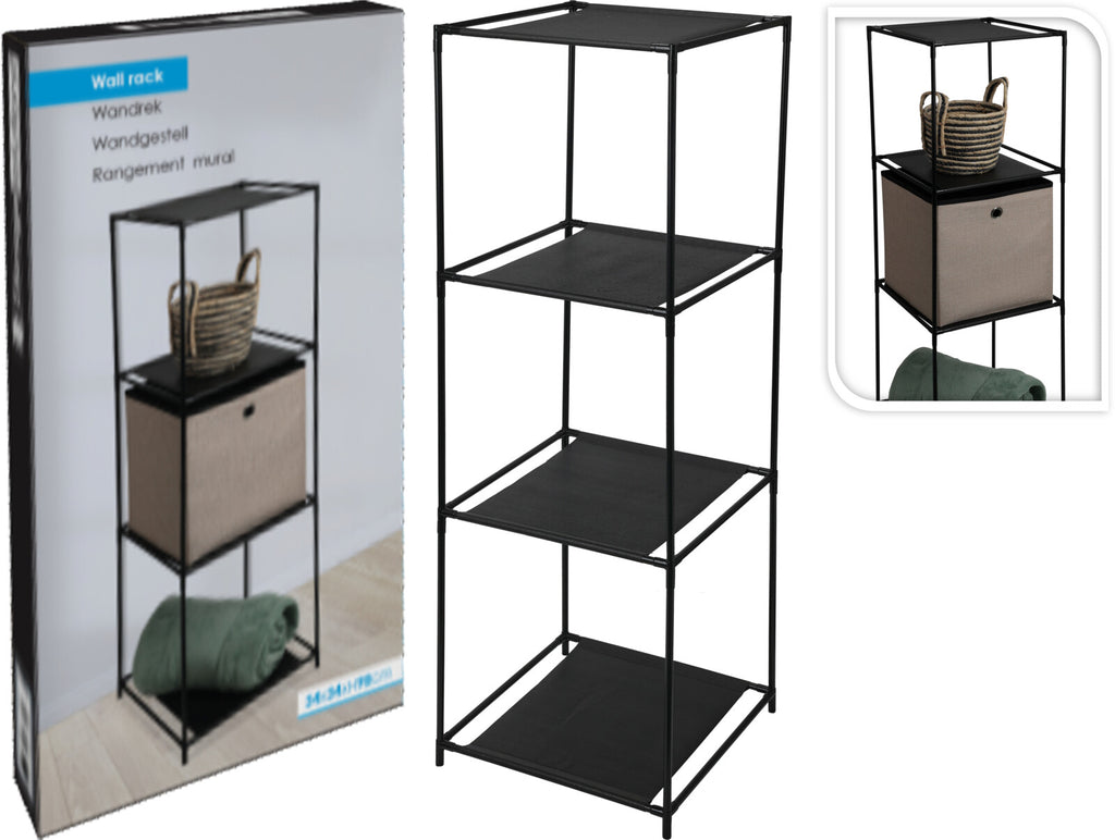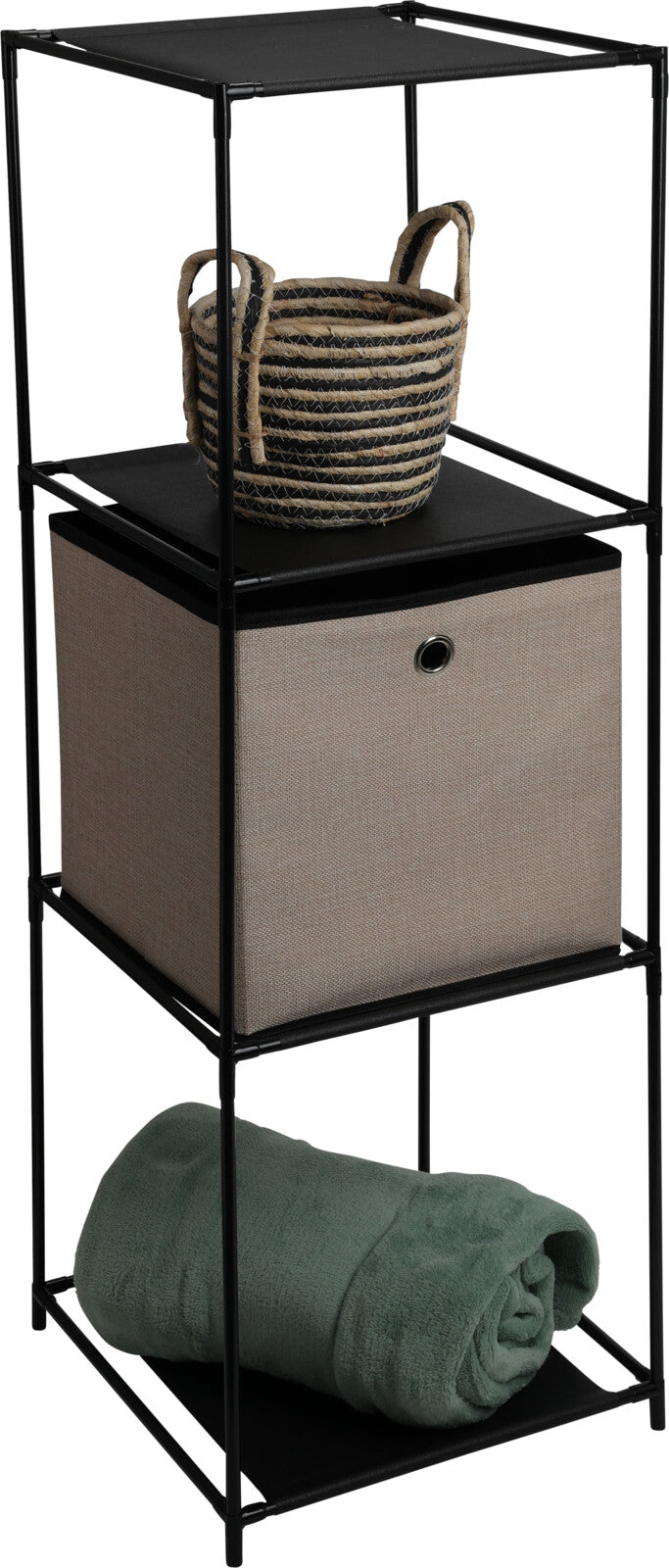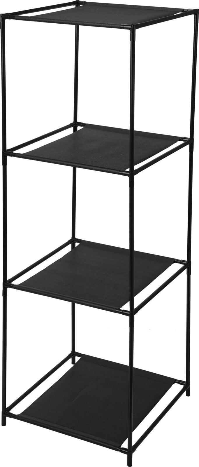 Maximize storage space with our, 3 shelf rack. Durable metal tubes and fabric shelves provide strength and versatility. Organize with ease and efficiency.