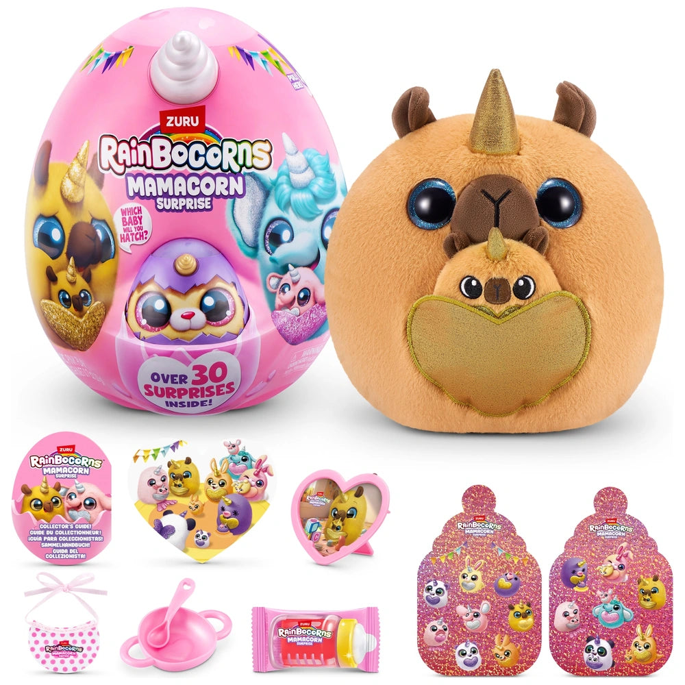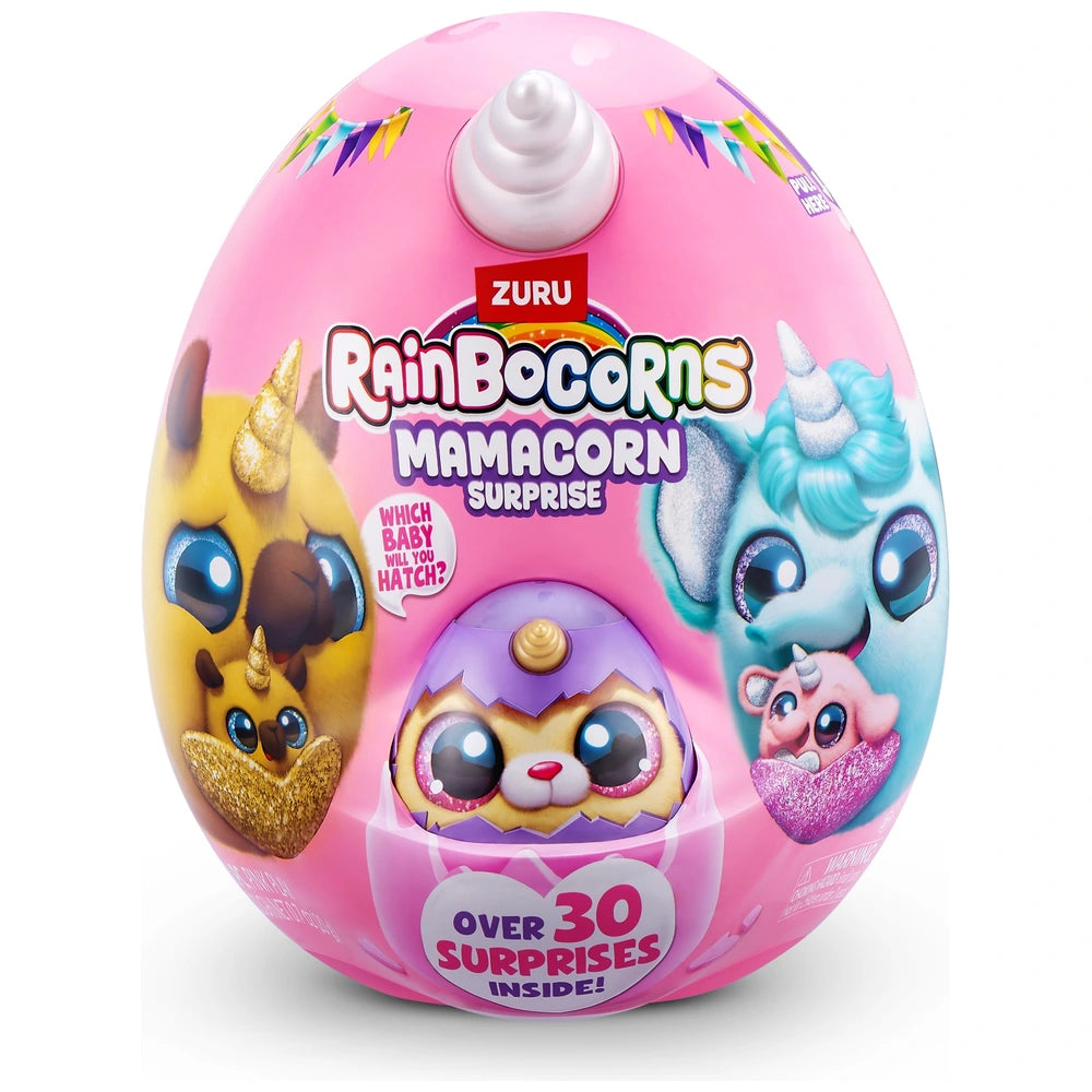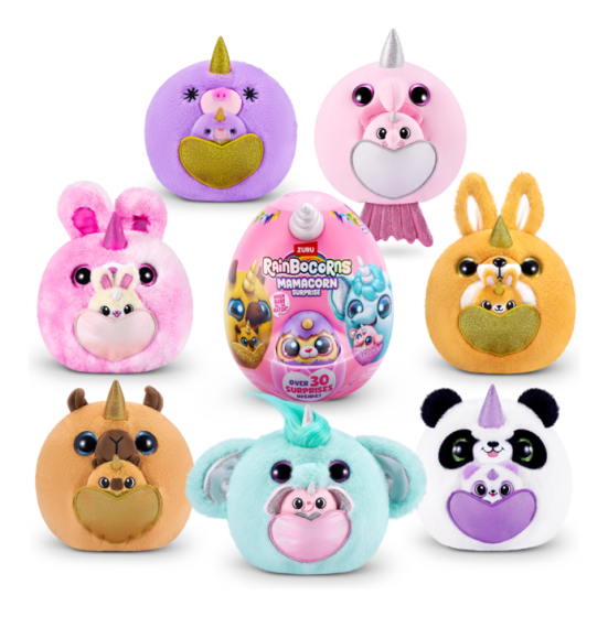 Which one will you get? Crack open the egg to meet your new favorite plush, Mamacorn! Each Rainbocorns Mamacorn Surprise is filled with charm and ready to bring magic to your collection. Uncover a mystery baby Rainbocorn and add even more enchantment to your world. With over 30 surprises inside, including fun accessories, mini surprises, and a magic heart to reveal, Mamacorn is sure to delight!