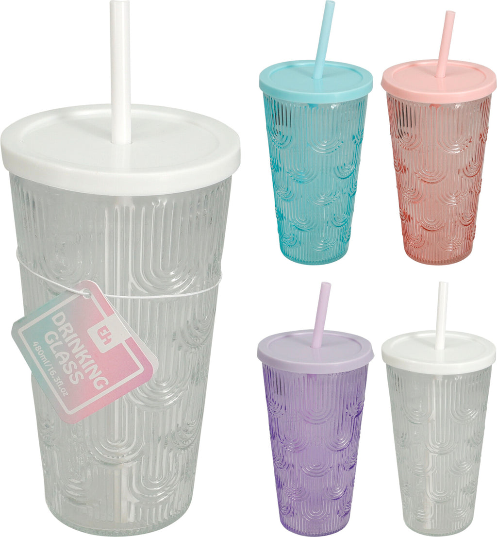 Stay refreshed with this 660ml plastic drinking cup with lid and straw!