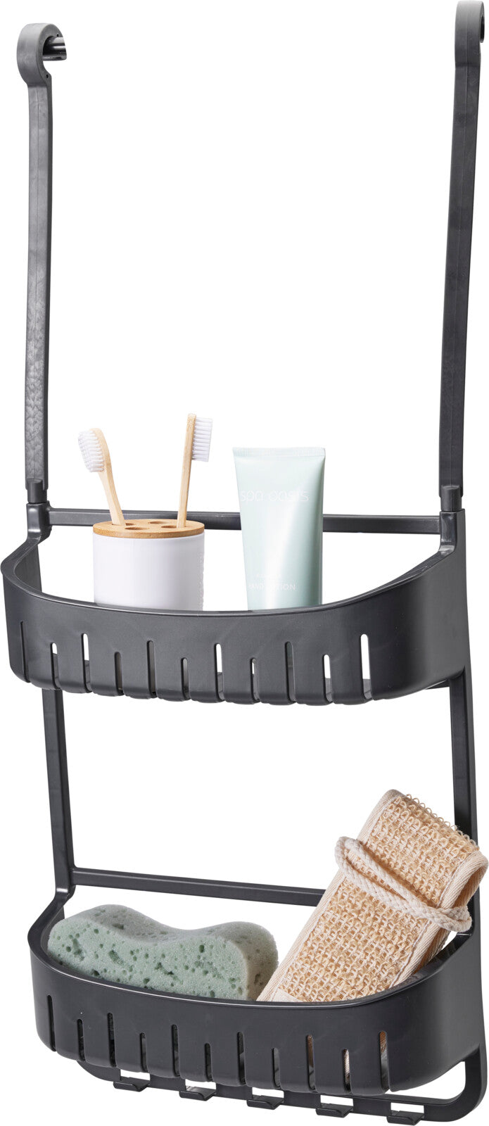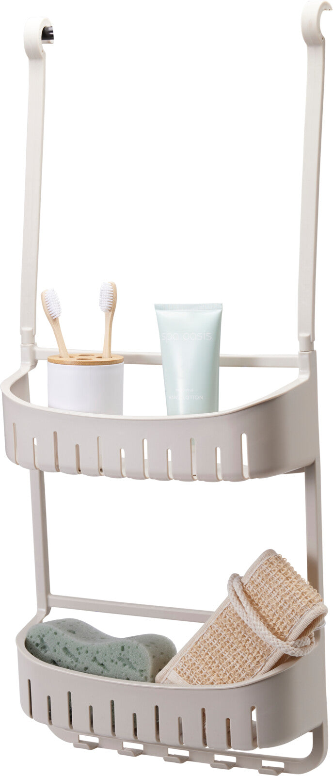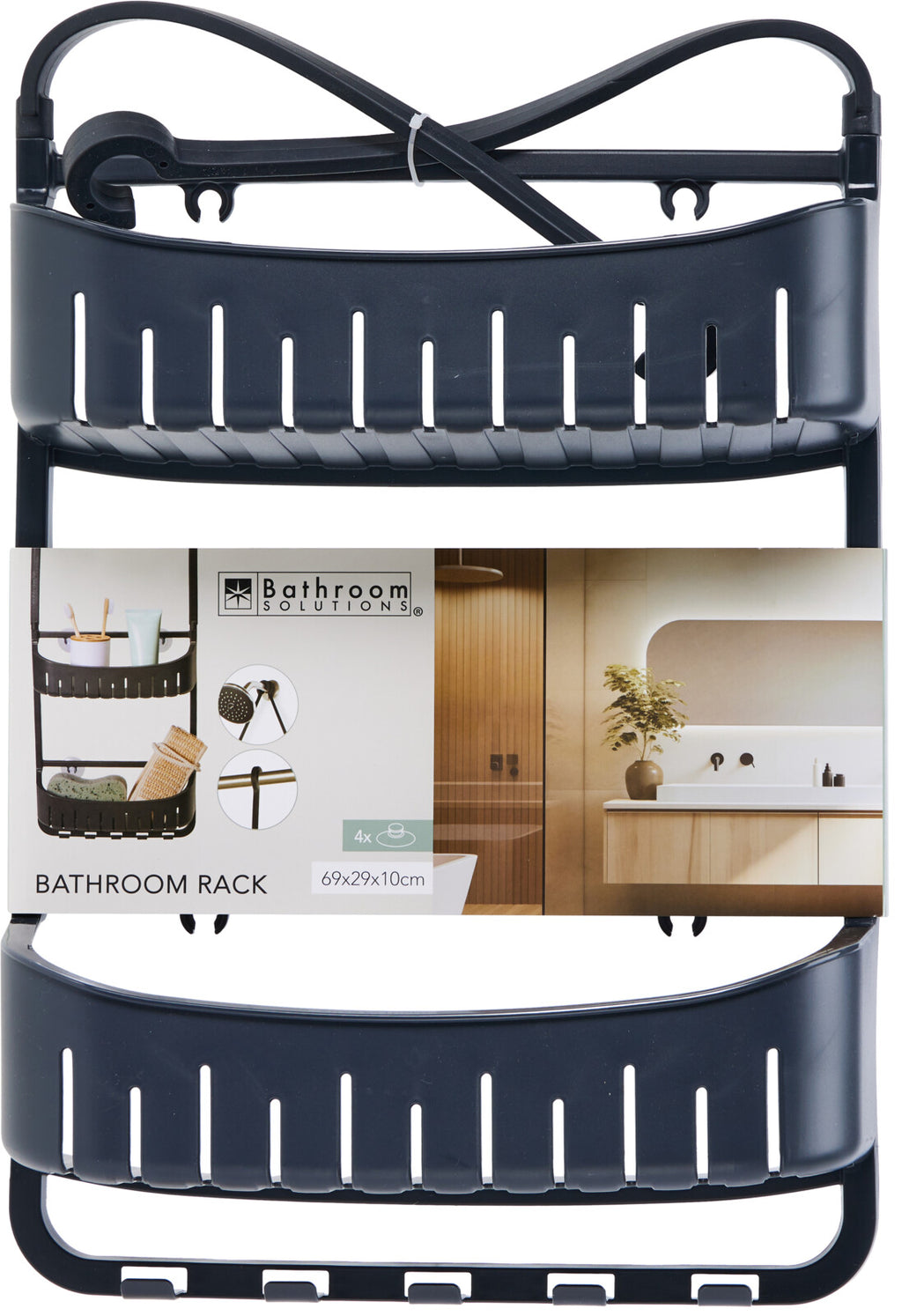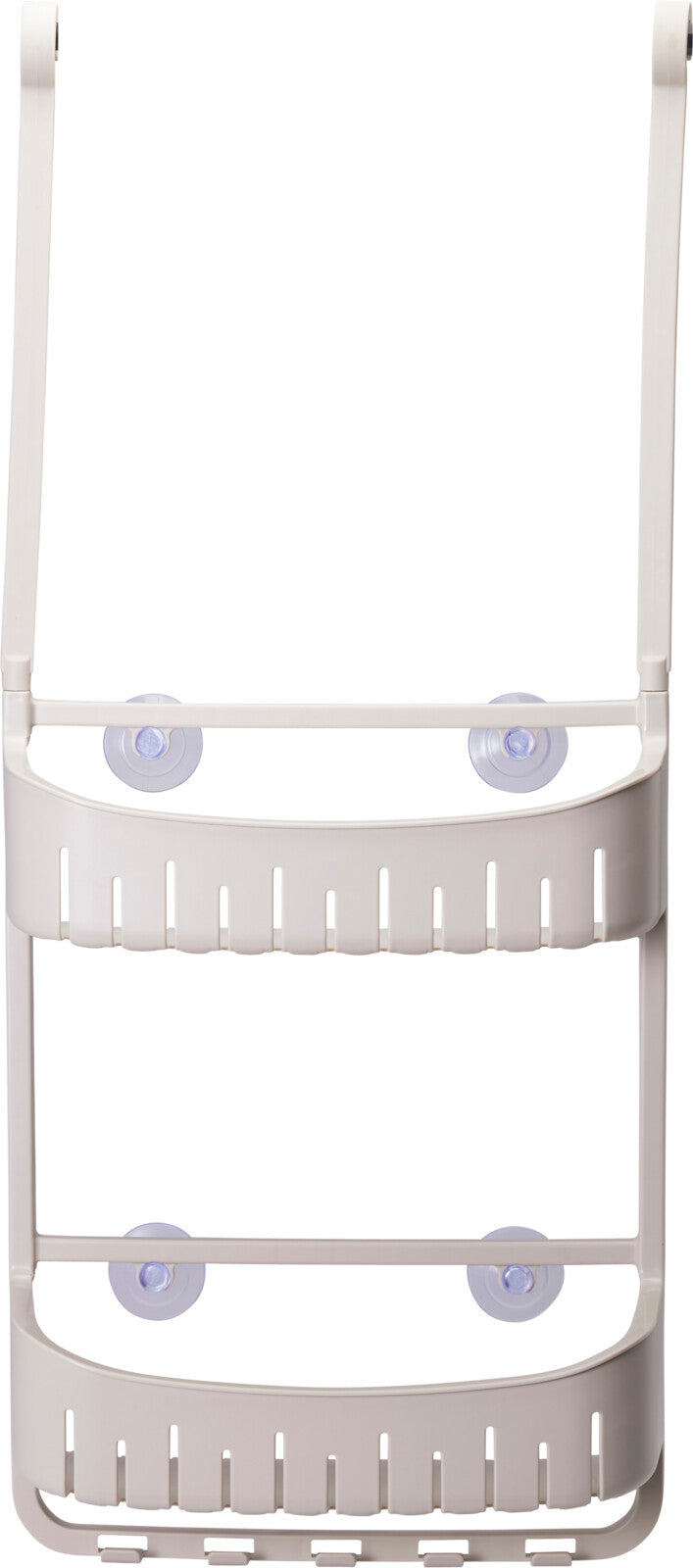 Organize your bathroom effortlessly with this shower rack made from durable polypropylene. Measuring 690 x 290 x 100 mm, it features four TPE suction cups for secure attachment and rubber-top hooks for added convenience.