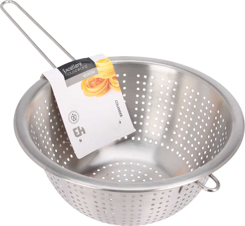 An essential bit of kitchen kit, this Stainless Steel Colander With Handle will help you strain, drain and rinse potatoes, pasta and vegetables with ease.