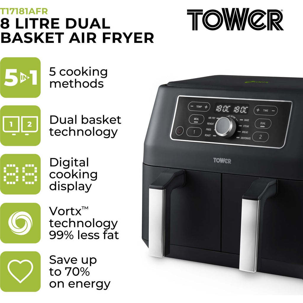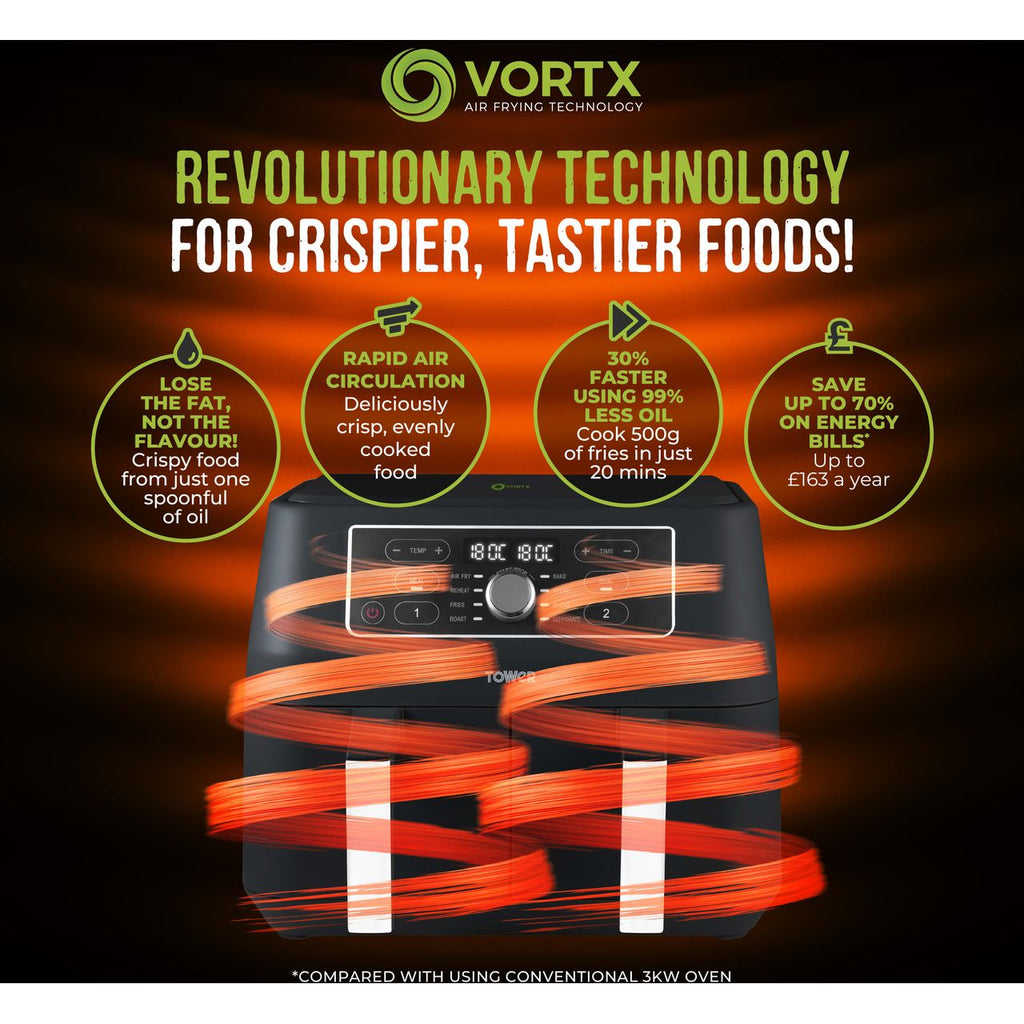 Exclusive to Tower, Vortx cooks food up to 30% faster with little to no oil, delivering crispy, golden results that are healthier and guilt-free.