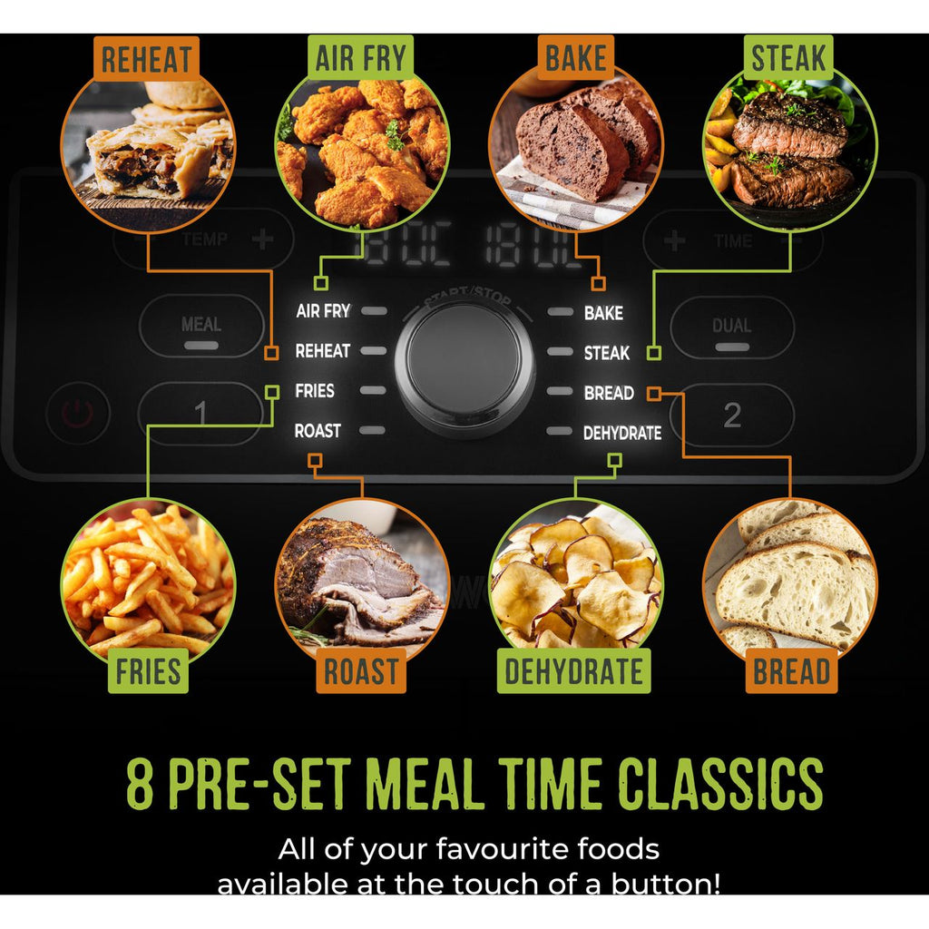 Choose from Air Fry, Reheat, Fries, Roast, Bake and more for quick, versatile meal preparation at the touch of a button.