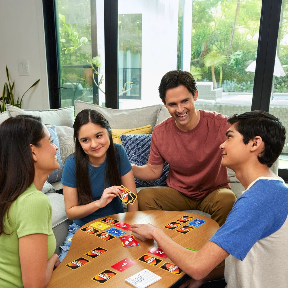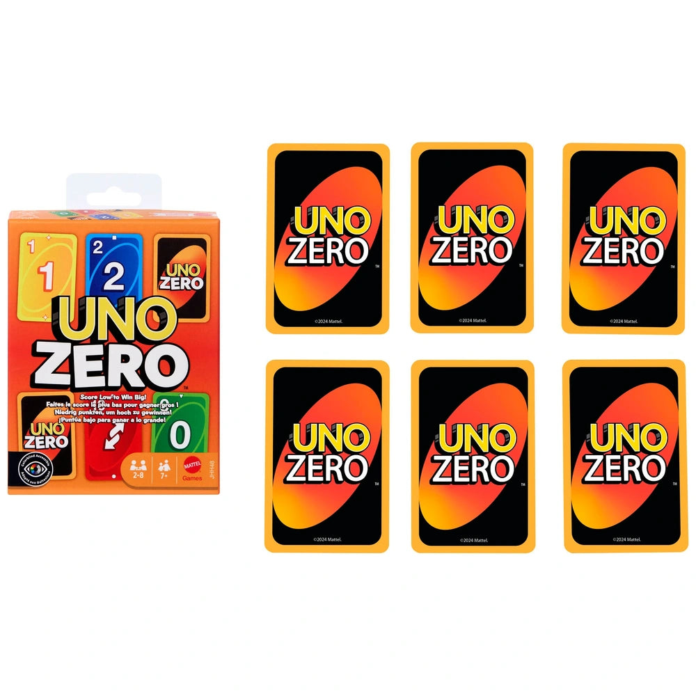 UNO Zero takes the classic UNO game to a whole new level with an exciting twist! In this fun and strategic version, players use a 2 x 3 grid of facedown cards, aiming for the lowest score to win. The game combines familiar UNO elements with the rules from the card game "Golf," where players swap high-value cards for low-value ones to reduce their points. With special graphic symbols to aid players with colour blindness, UNO Zero ensures everyone can join in the fun.