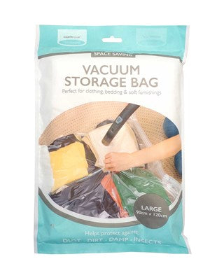 These large-format vacuum storage bags offer compression for bulky items. Measuring 90cm x 120cm, they provide substantial capacity for seasonal clothing, bedding, curtains, and textiles.