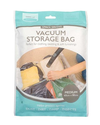 These medium-format vacuum storage bags offer compression for bulky items. Measuring 60cm x 80cm, they provide substantial capacity for seasonal clothing, bedding, curtains, and textiles.