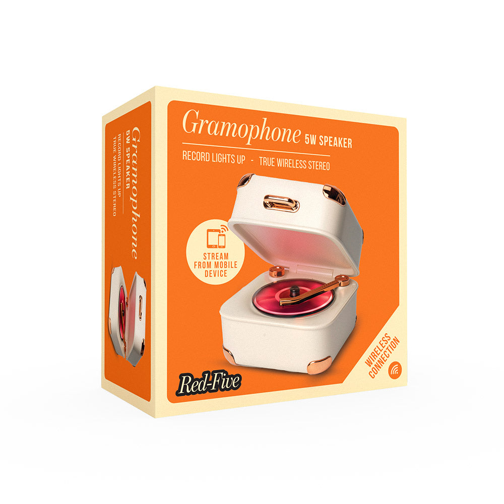 A cool vintage record-player wireless speaker. With light up record, 4W speaker and 7-8h based on 50% volume.