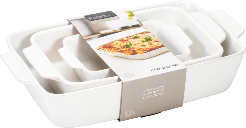 This premium 3-piece stoneware oven dish set offers versatility for all your baking needs.