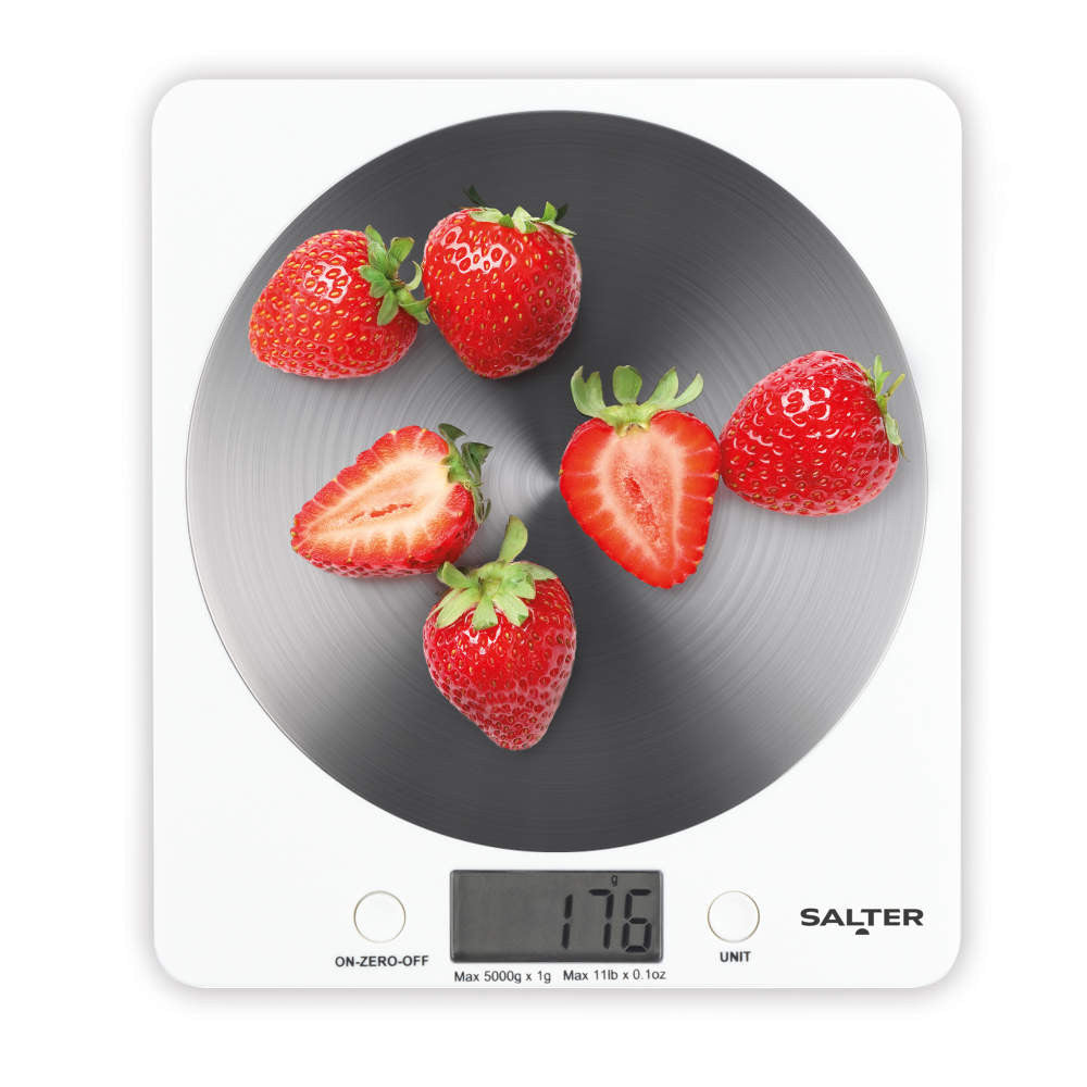 - Effortlessly weigh out your favourite baking ingredients with the Disc Electronic Scale from Salter, perfect for any kitchen collection.