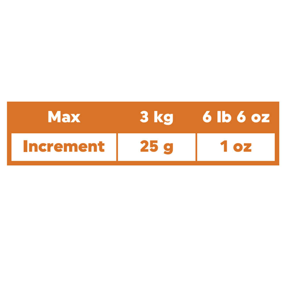 • SMALL AND HANDY: Perfect for precise weighing, this mini scale has a 3kg / 6lb 6oz capacity so you can accurately measure ingredients using the easy-read dial and large digits.