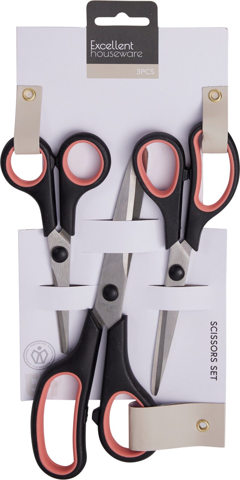The 3 Piece Scissor Set offers you a wide variety of tools for everyday cutting tasks with embroidery scissors which are ideal for delicate tasks, Kitchen scissors for cooking tasks, as well as all-purpose scissors.