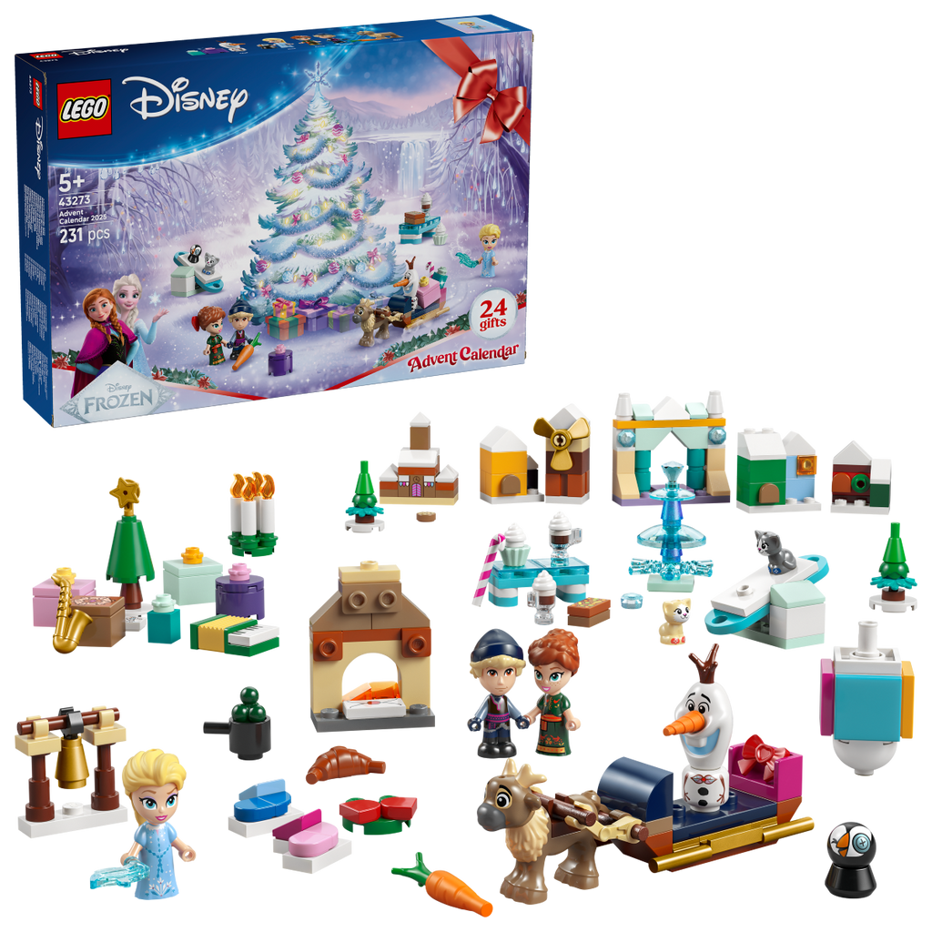 • Disney characters and more – The Advent calendar has Elsa, Anna, Kristoff, Olaf and Sven LEGO® ǀ Disney characters, 2 LEGO ǀ Disney kitten characters, a mini Arendelle Castle and an ice crystal tree