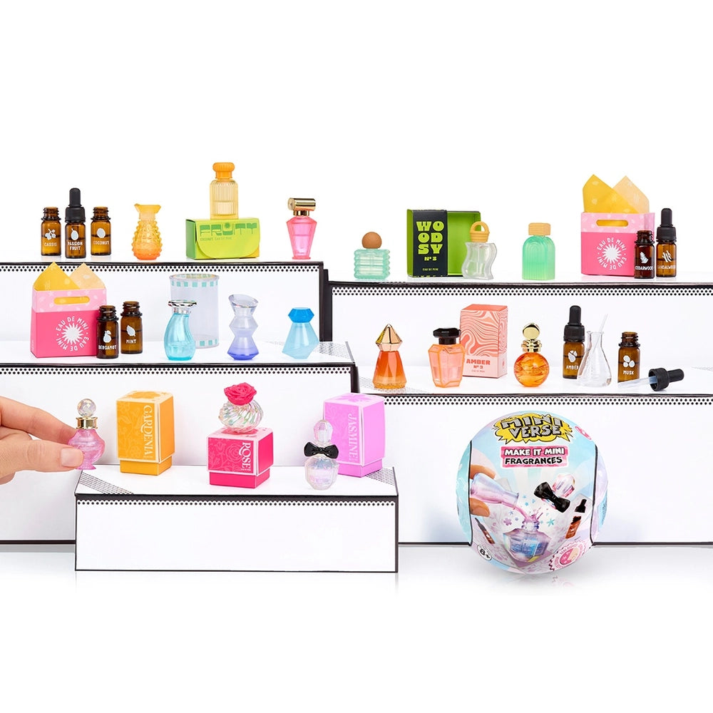 Featuring mini scents and major style, make custom fragrances with the MGA Miniverse: Make It Mini Fragrances Collectible range! With 12 styles and 5 scent themes - Fruity, Amber, Floral, Fresh and Woody - there's so much to make and collect (each sold separately). Simply follow the instructions on the included collectors guide to make your own mini fragrance.