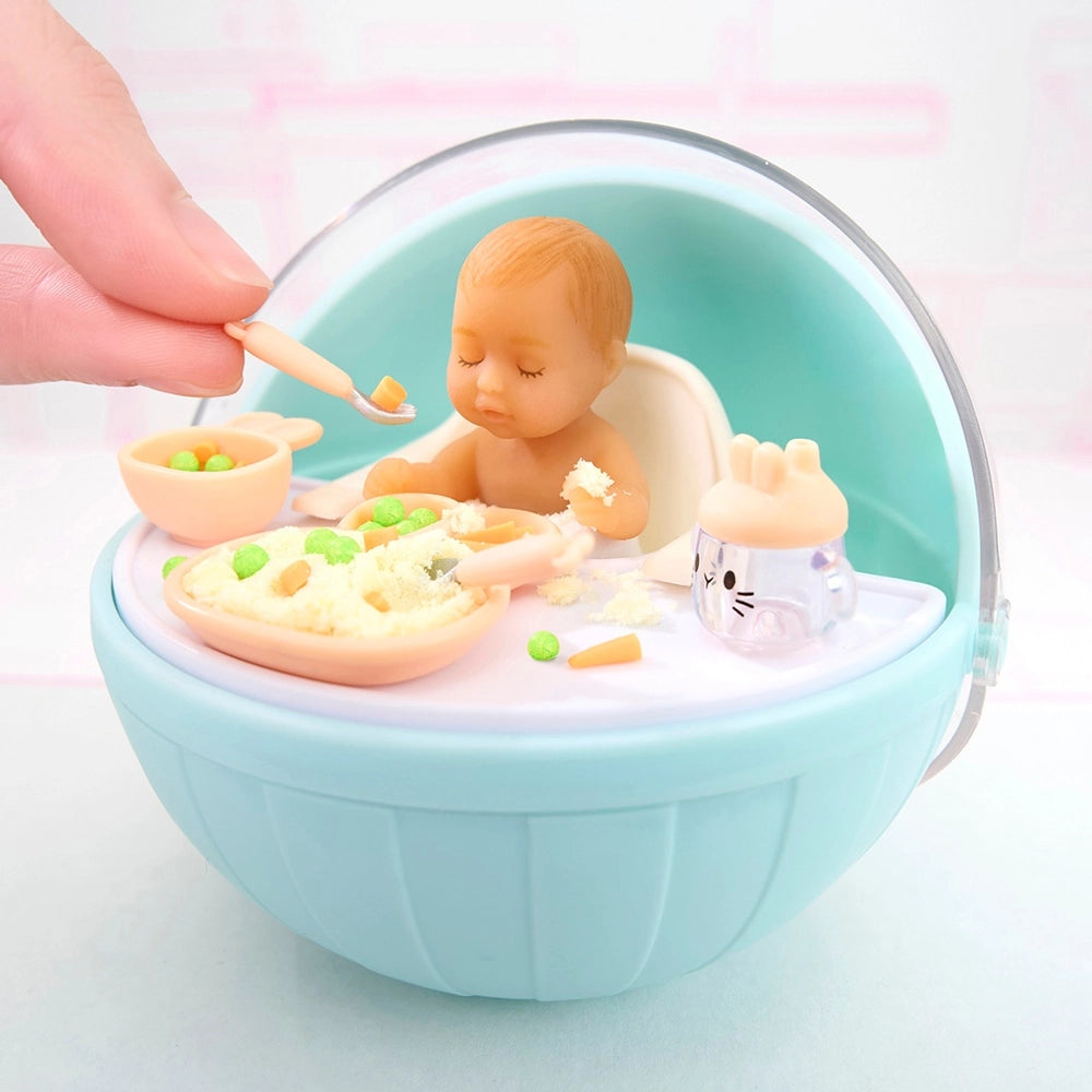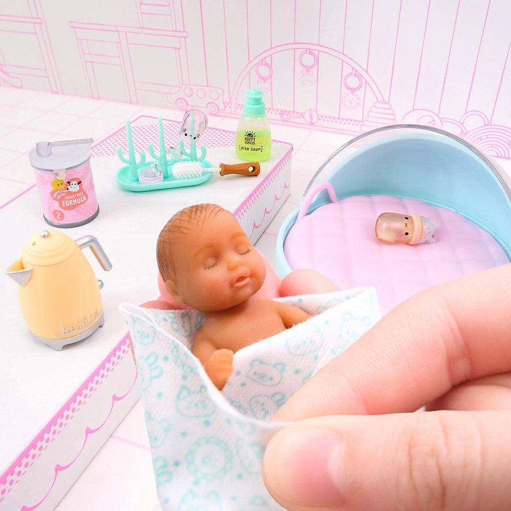 Each capsule transforms into either a feeding station or crib for your mini baby - perfect for showing off your creations and tucking your little one in for a nap after mealtime. From itty-bitty mixing bowls to adorable kitchen tools, build out your very own baby feeding setup with tons of tiny accessories. Create a whole nursery of nurturing fun!