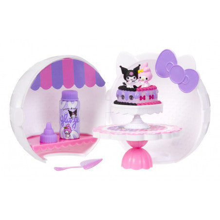 Each ball comes with realistic mini items to make your own mini replicas of your favorite Hello Kitty and Friends themed foods and items, including a Hello Kitty themed Terrarium, a Keroppi Matcha Latte, and even Cinnamoroll Cupcakes!