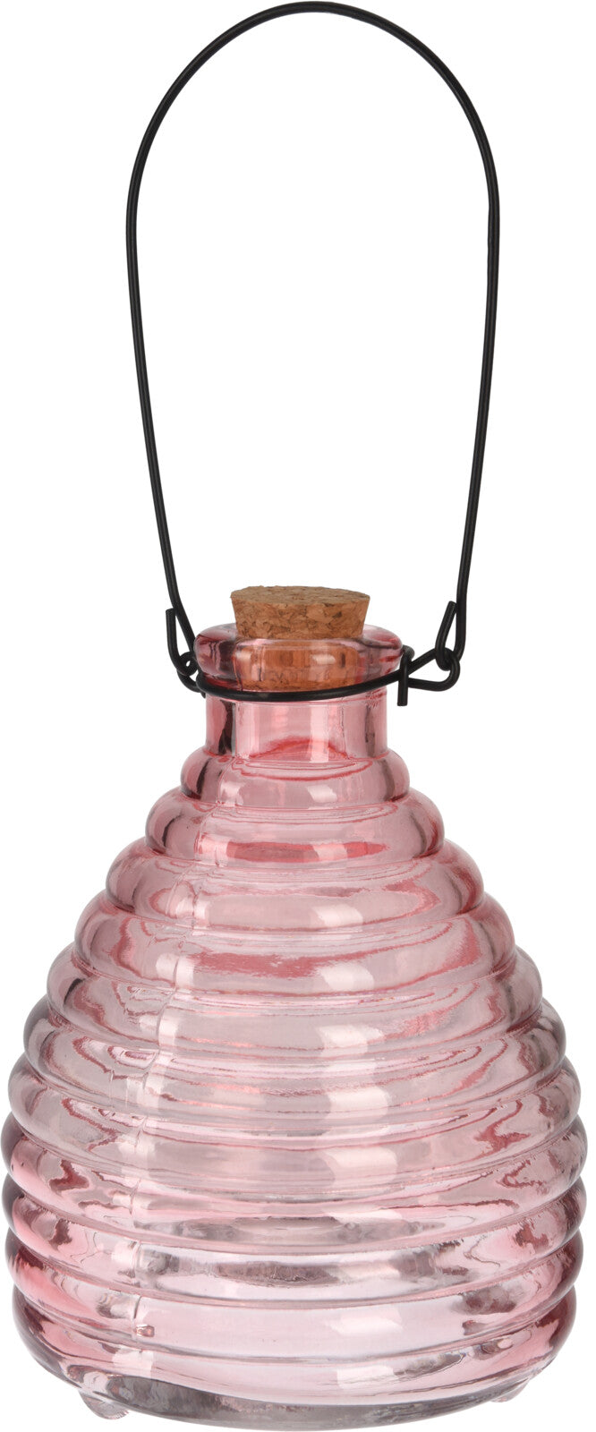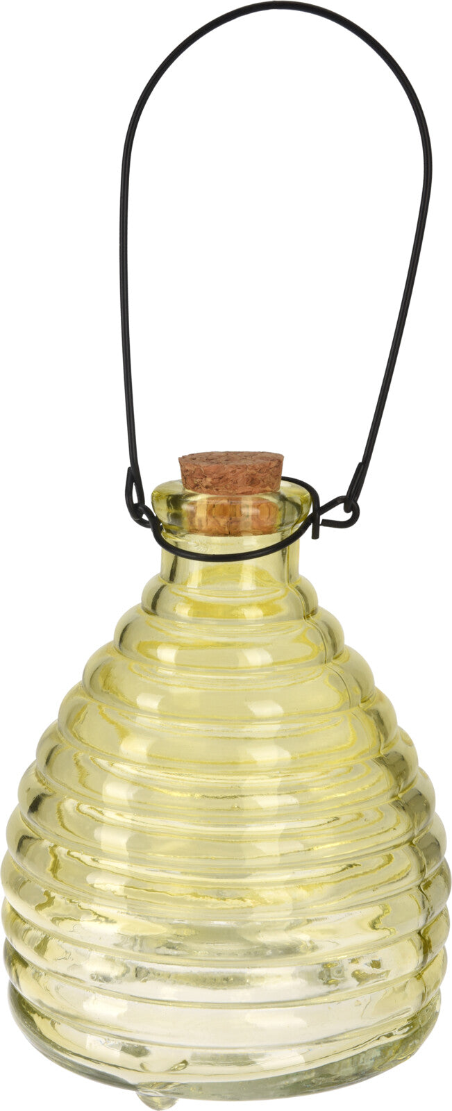 Simply bait this colorful trap by pouring in a little fruit juice or sugar water and place it outdoors. Wasps will be lured to the trap, instead of to you and your food! The insects enter through the opening in the bottom, and then are unable to escape. Hang the trap from a tree or post using the attached metal hanger.