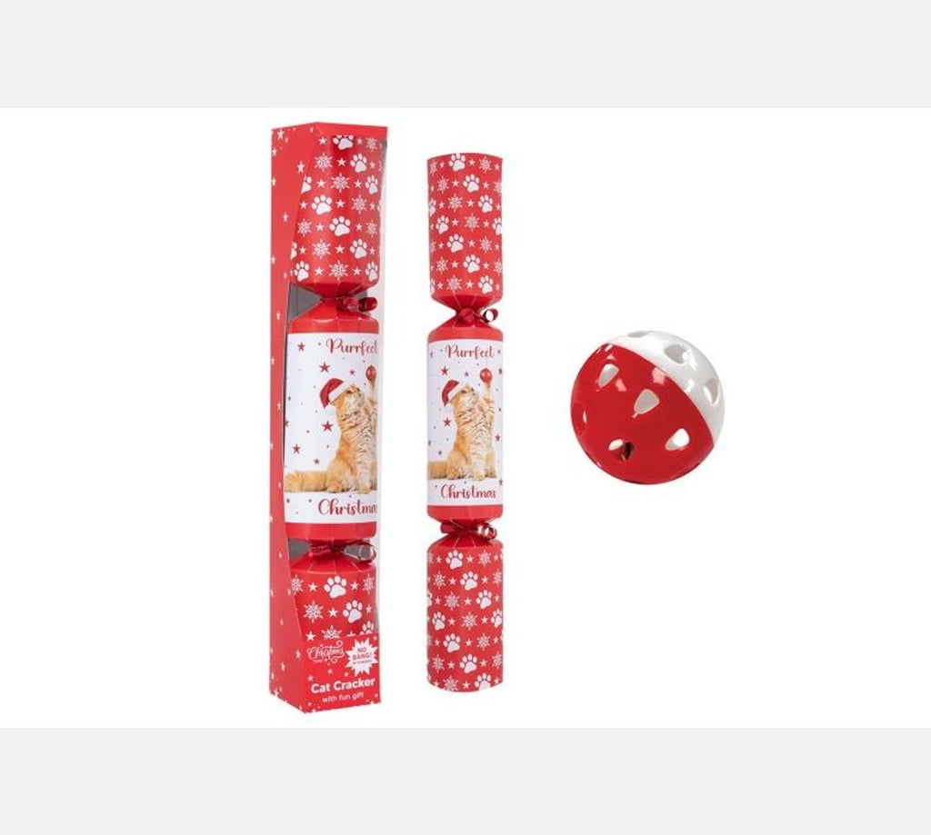 This pet cracker is a fun and engaging item for any seasonal collection, featuring a decorative box, with a cat cartoon design. Each cracker contains a bell cat toy.