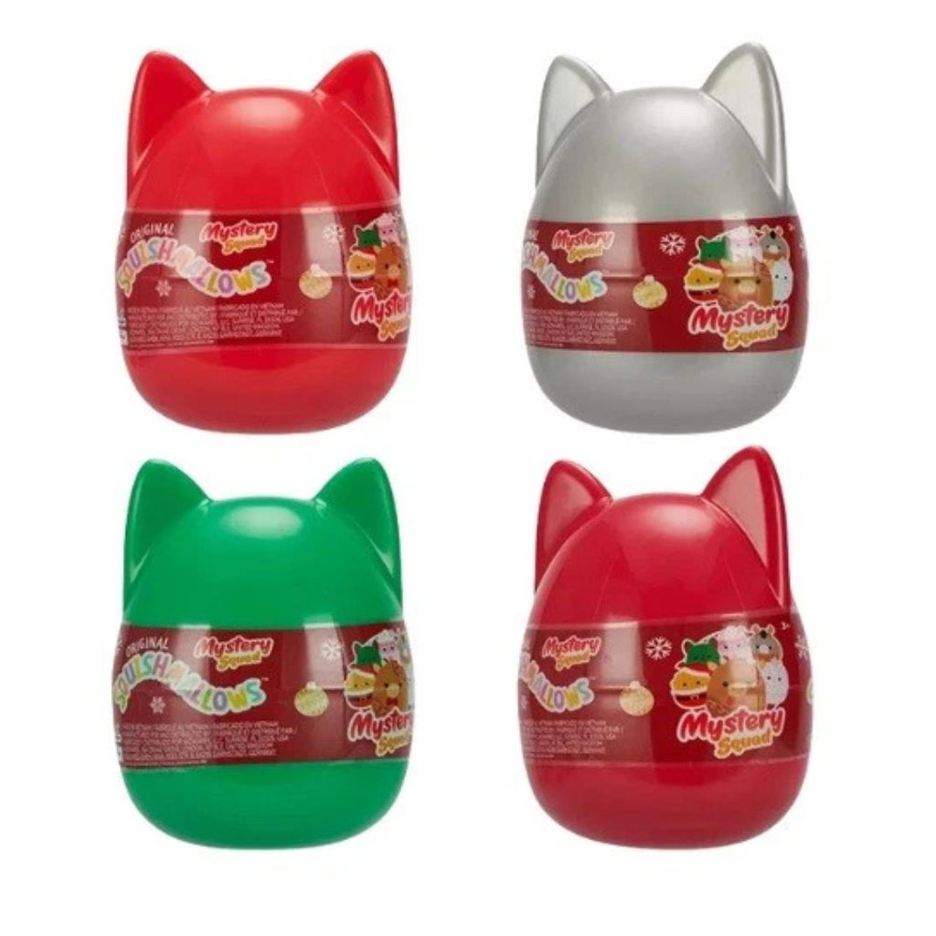 The Original Squishmallows brand brings holiday cheer with this 4 Inch Holiday Plush Mystery Capsule. Each capsule holds one surprise holiday-themed Squishmallow inside a festive, cat-eared container. Collect six merry characters like a gingerbread cow, fruit bat, Christmas tree, and even fries in a Santa suit. These limited-edition minis are full of seasonal charm and squishy fun.