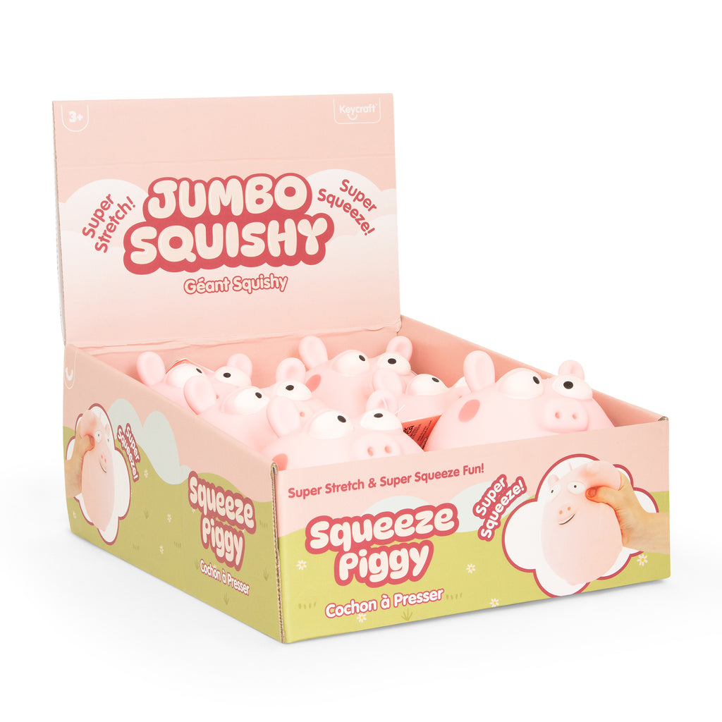 Jumbo squishy pig. Soft, stretchable design for fidgeting and stress relief.
